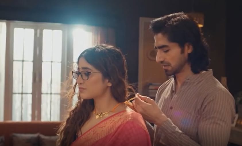 The episode begins with Padma urging Rishabh to complete the thali (mangalsutra) ritual by tying all three knots around Bhagyashree’s neck. While Rishabh ties the first knot, he is interrupted by an important phone call. Handing over the thali to Padma, he leaves the rest of the ritual incomplete. Bhagyashree becomes emotional, recalling moments from their journey, including how he once supported and cared for her.